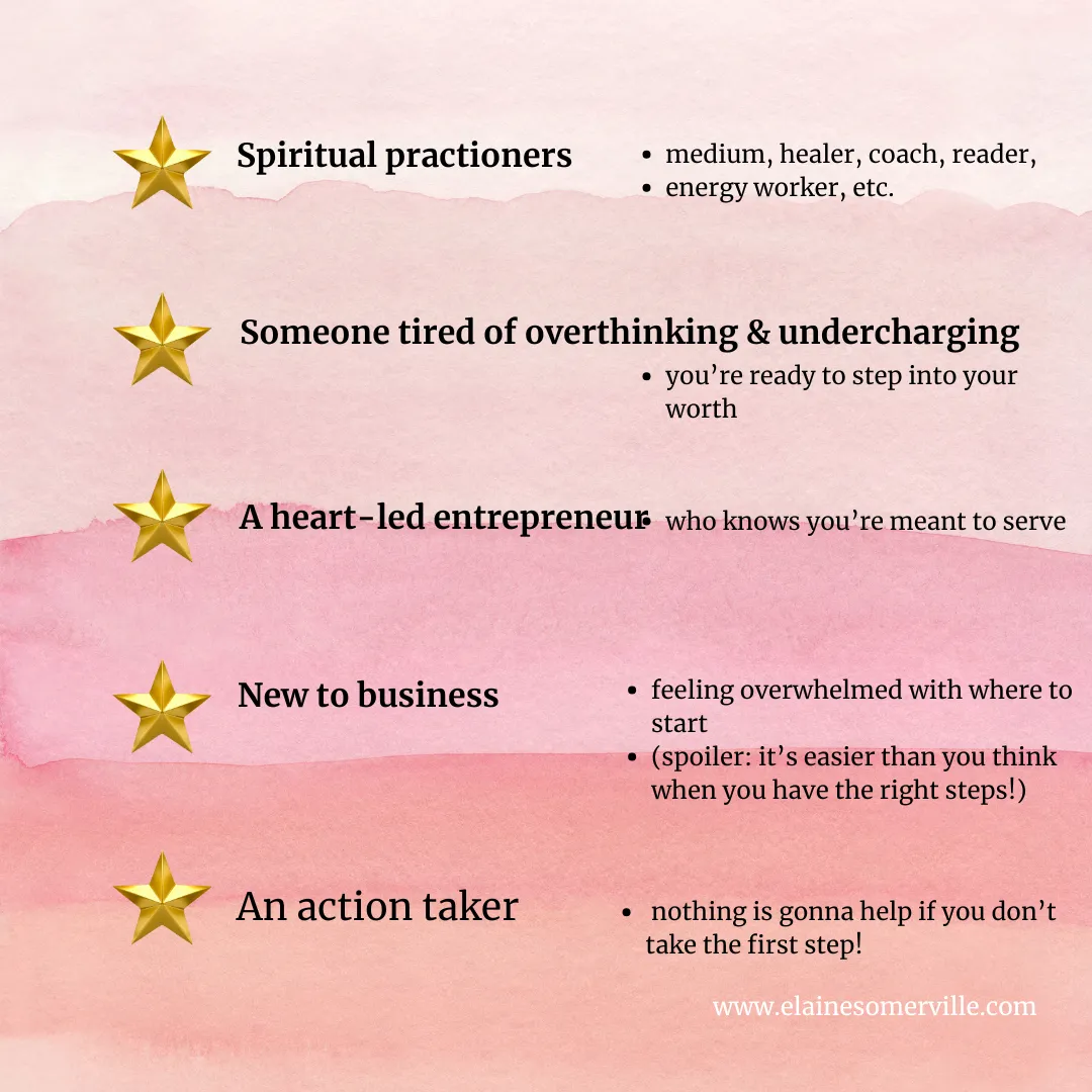 ✔️ A spiritual practitioner (medium, healer, coach, reader, energy worker, etc.) who wants to turn your passion into a thriving business.